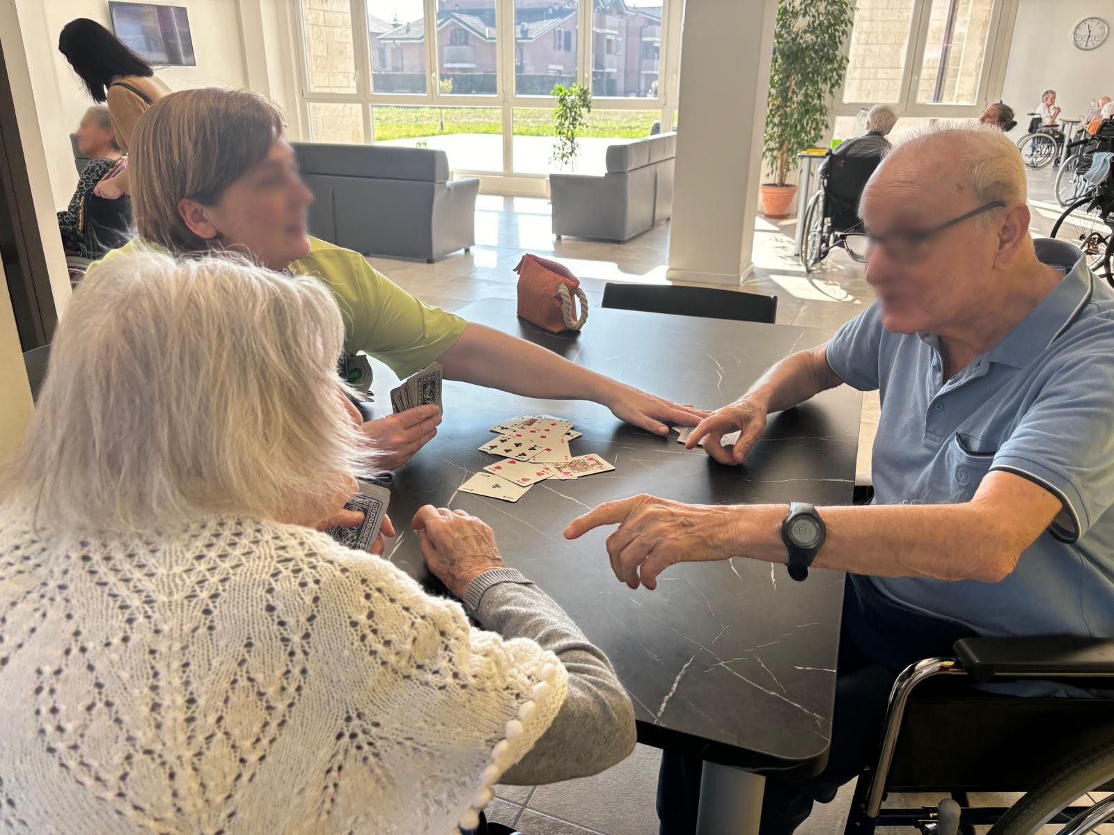 La struttura con i suoi spazi verdi che la circondano, consente agli Assistiti e ai loro parenti di trascorrere lieti pomeriggi a contatto con la natura; durante la bella stagione molte attività ricreative e motorie vengono proprio effettuate in queste aree.